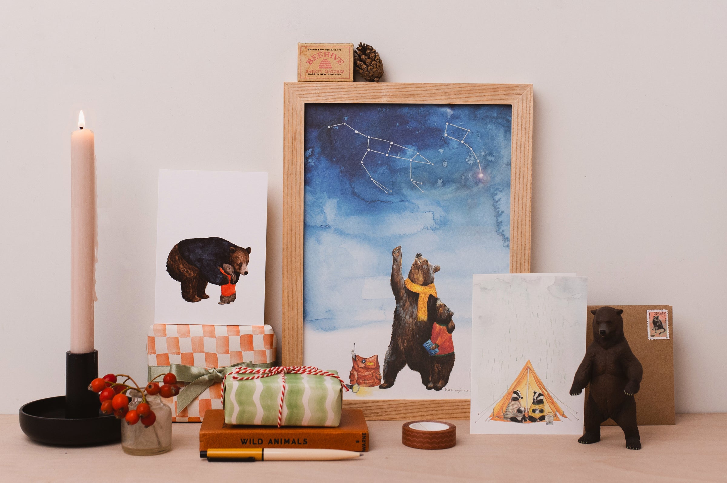 You've come to a world of illustrated creatures, greetings cards, prints and other paper goods. All made from Helen's original watercolour illustrations and printed with care in the UK. Here to bring a smile to any occasion or brighten up your walls.