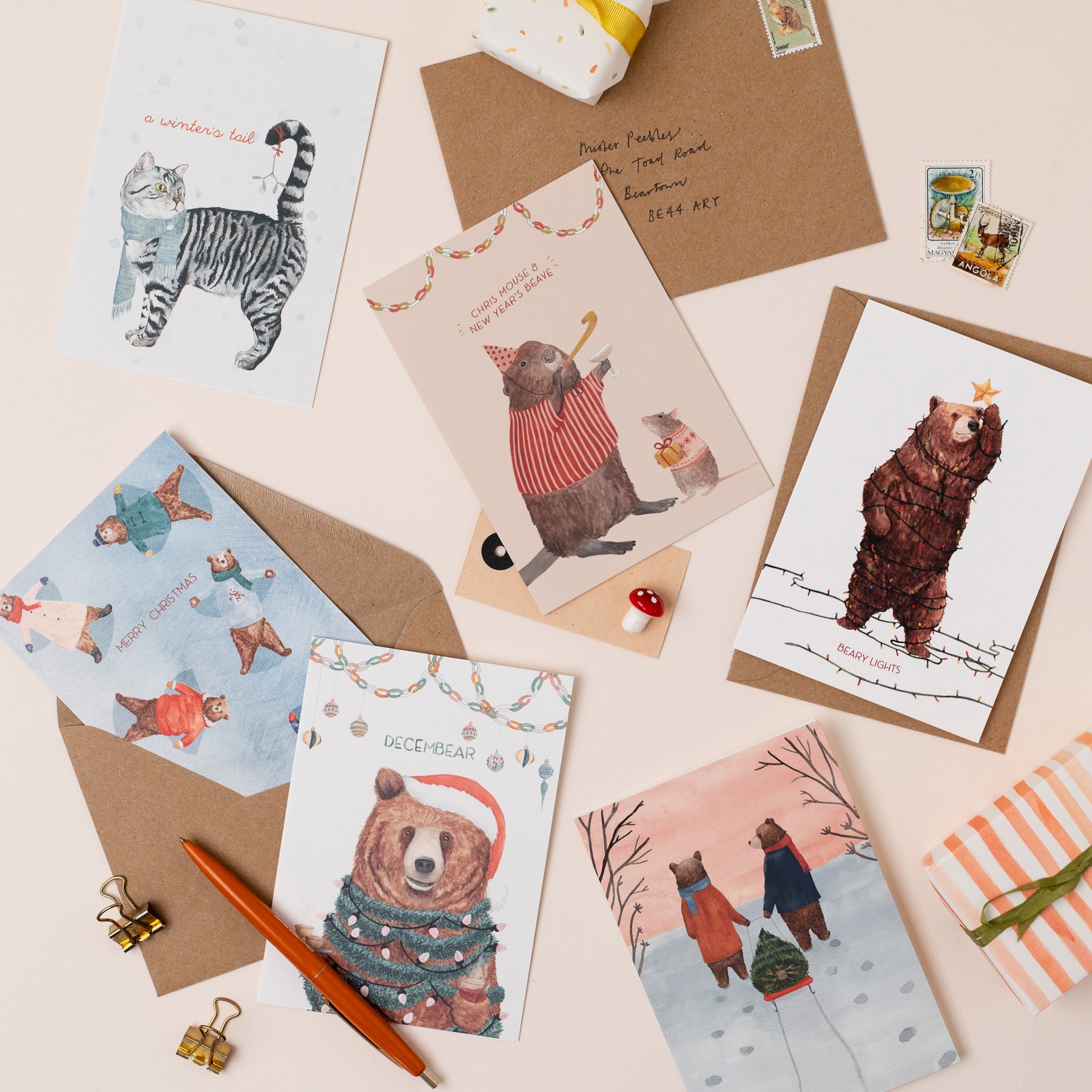 All cards start life as original illustrations, hand-drawn by Helen using pencil and watercolours. All printed on think matt G.F Smith card.