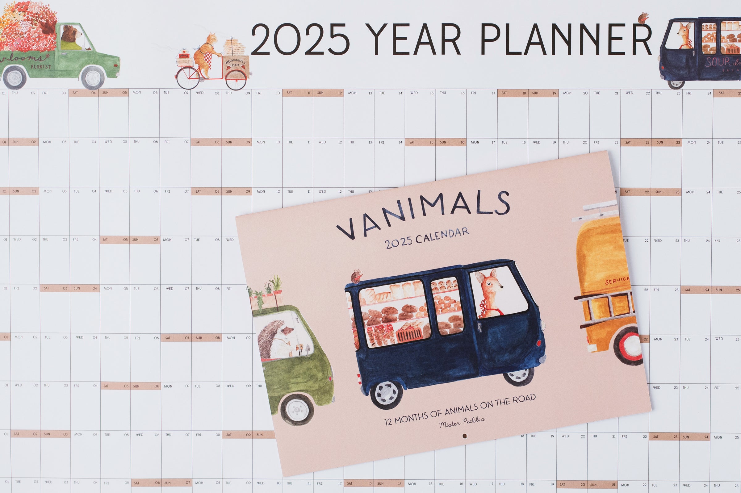 12 new illustrations each year, filled with a sense of pun. A full page illustration and a full page grid with space for all those plans.