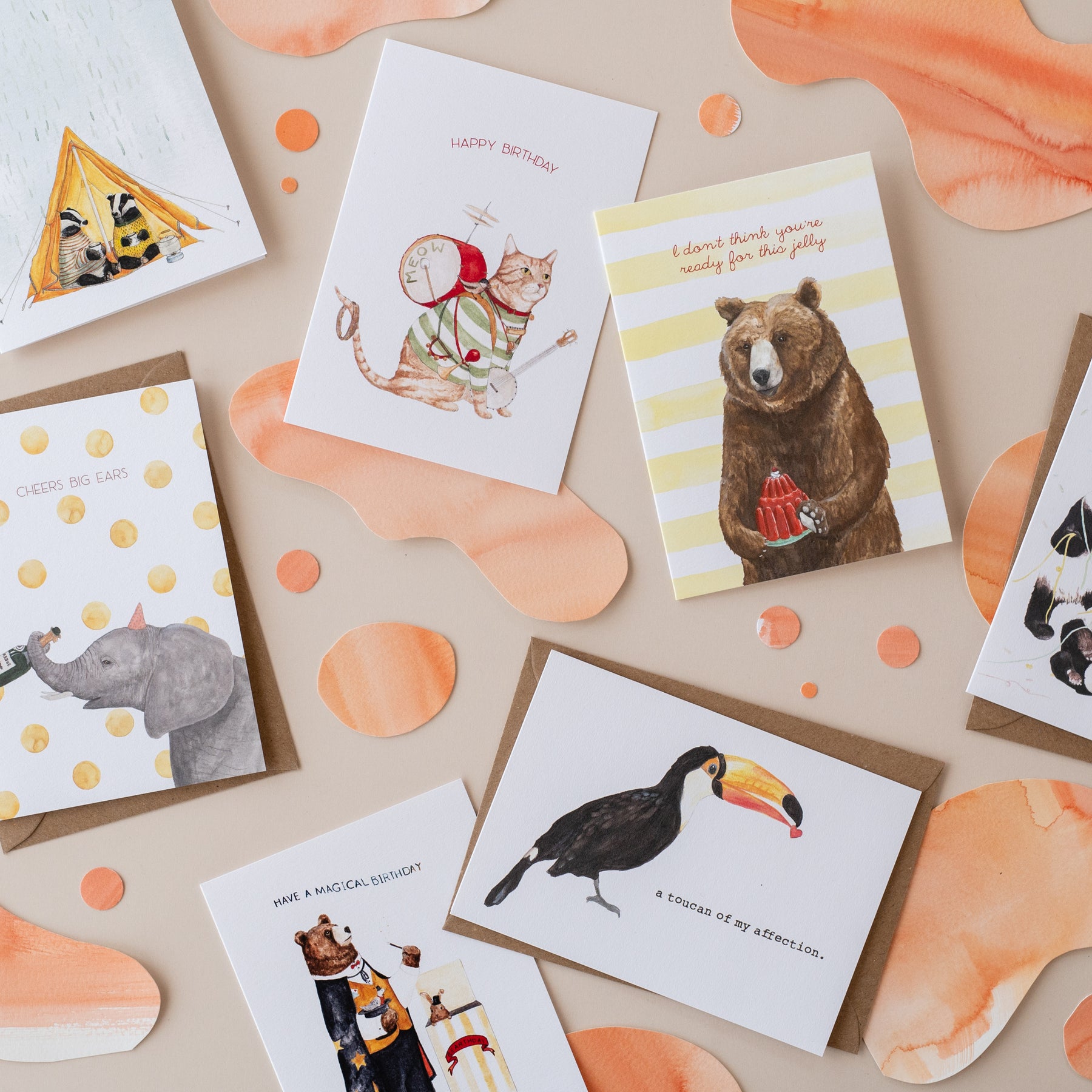 A mystery mix of 10 cards. A general mix of designs, no Christmas designs included. If you'd like Christmas cards, there are Christmas bundles too.